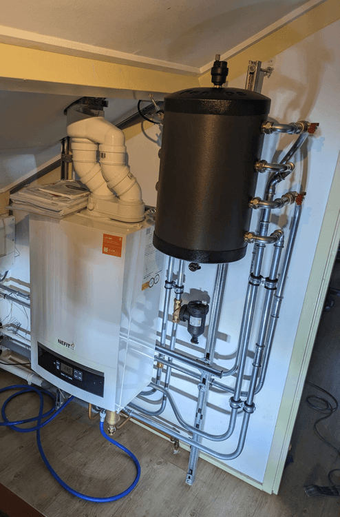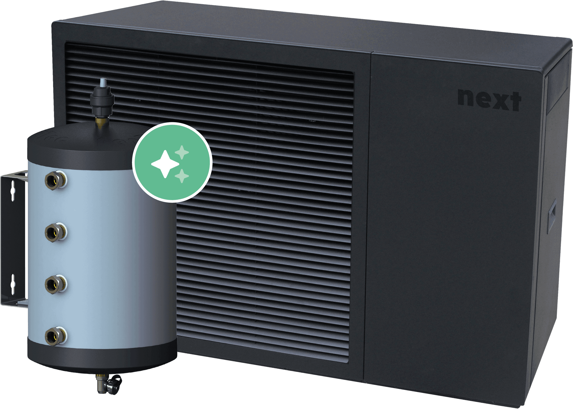 Warmtepompen kunnen op meerdere manieren aangesloten worden op het bestaande cv-systeem. De next warmtepomp wordt altijd op een robuuste manier geïnstalleerd. Dat betekent dat er niet bespaard wordt op noodzakelijke onderdelen in de installatie. Deze onderdelen zijn o.a. een (parallel) buffervat, een extra circulatiepomp, een vuilafscheider, een automatische ontluchter, een mechanische vorstbeveiliging en trillingsarm leidingwerk. De voordelen hiervan zijn: hogere levensduur, stabielere en geluidsarme werking, hogere efficiëntie en comfortabele ontdooicyclus.