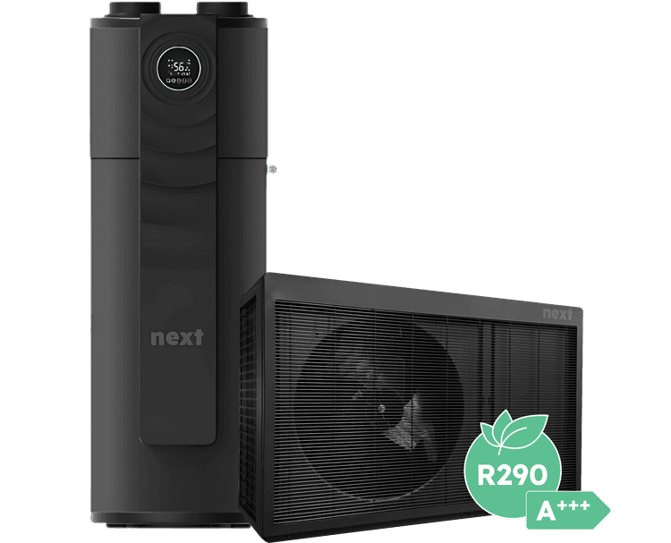 De meeste warmtepompen maken maximaal 55 graden aanvoertemperatuur. Door het gebruik van het R290 koudemiddel is de next warmtepomp in staat om uitzonderlijk hoge aanvoertemperaturen te maken tot 75 graden. Dat betekent dat de warmtepomp vergelijkbare temperaturen kan maken als de cv-ketel. Daarmee is de next warmtepomp geschikt voor vrijwel elke woning met alle type verwarmingssystemen zoals radiatoren. Vanzelfsprekend is de temperatuur instelbaar en kan de next warmtepomp ook op lagere energiezuinige temperaturen draaien.
