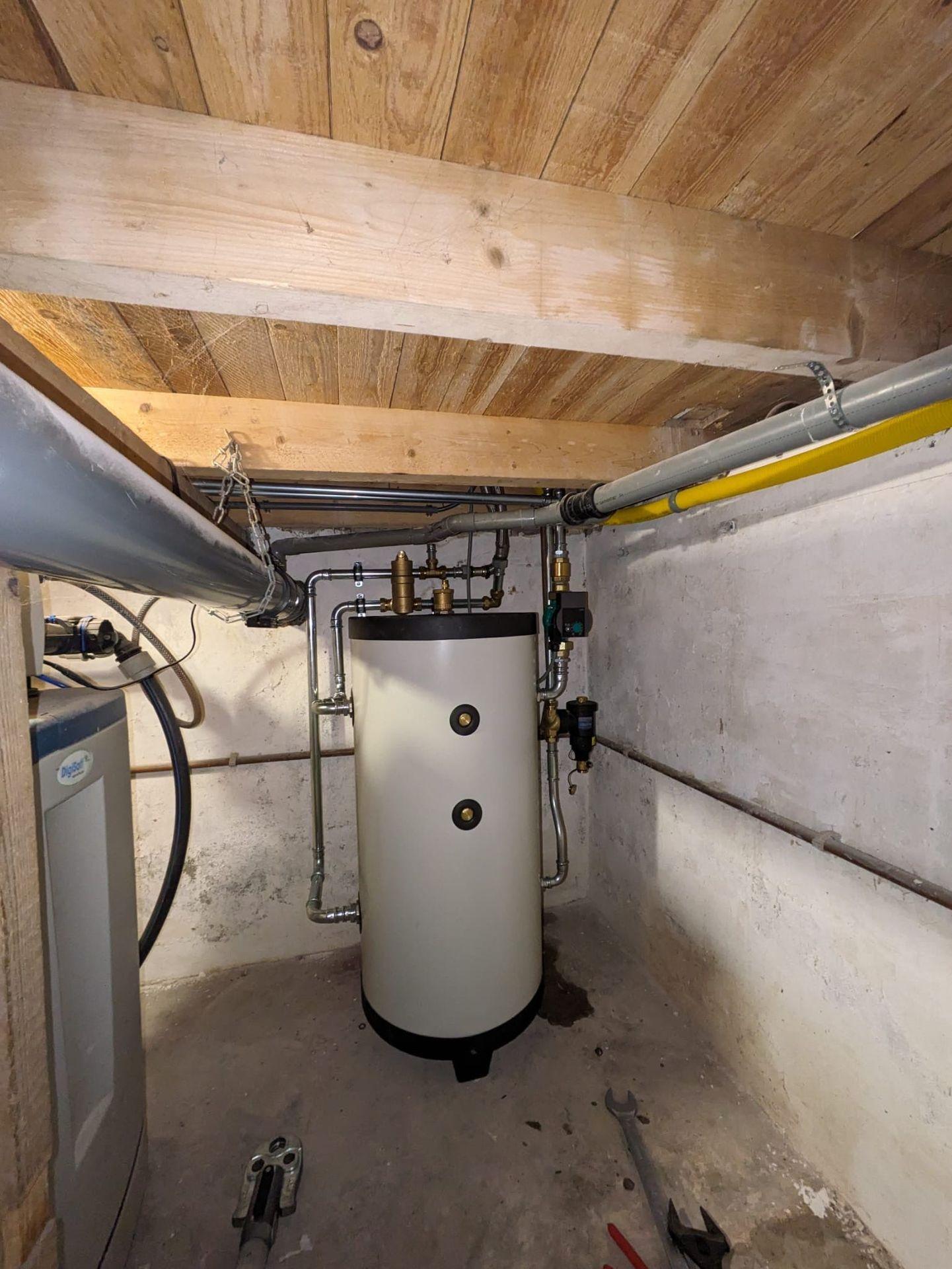 Alleen een buitenunit. Binnen dus geen grote ruimte nodig. Alleen een klein buffervat.