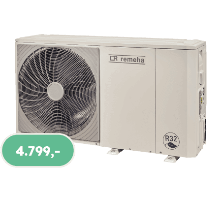 De Remeha Elga Ace Monoblock is in staat temperaturen tot 65°C te halen. Deze warmtepomp behoudt ook ver onder nul zijn vermogen. We installeren 4kW of 6kW, enkel hybride.